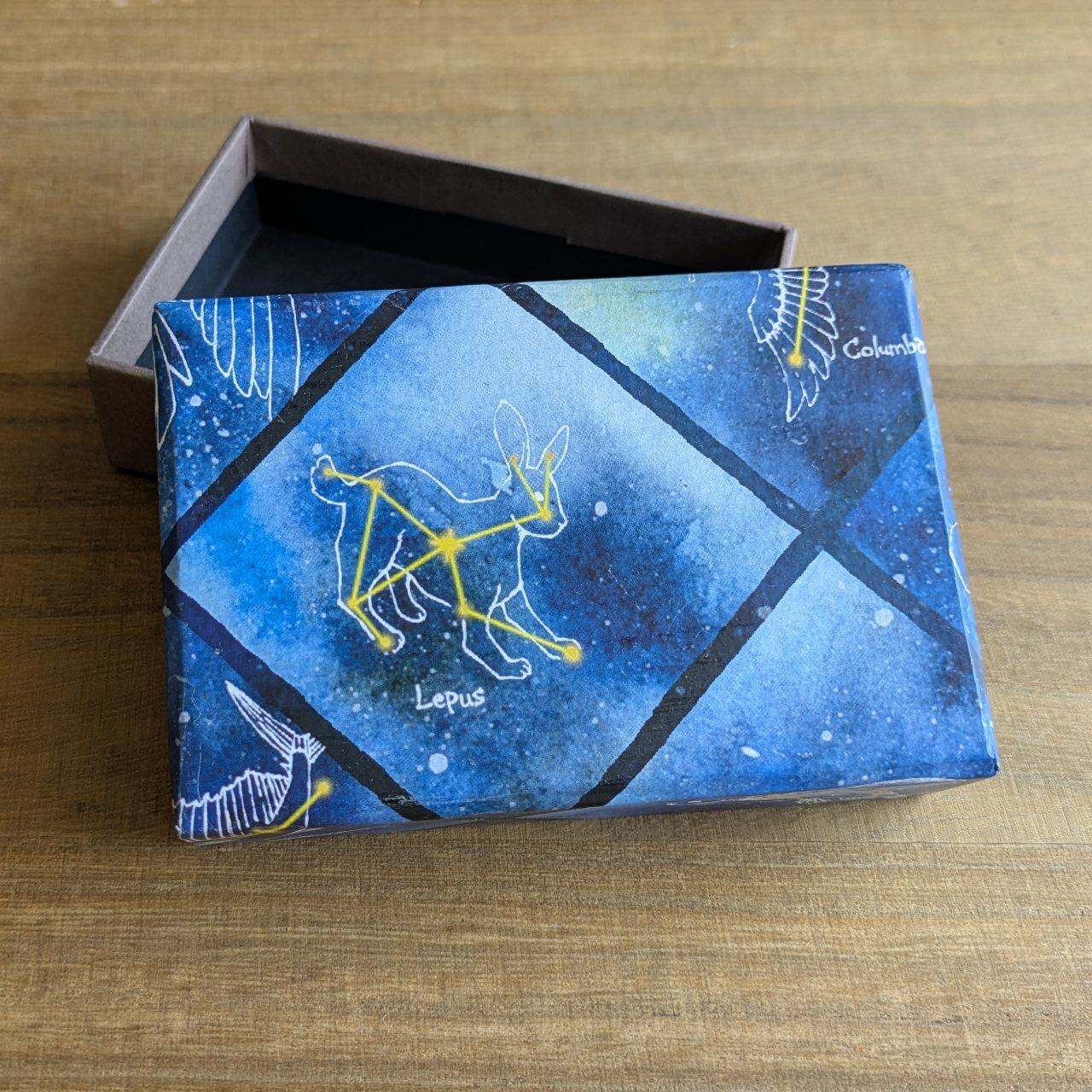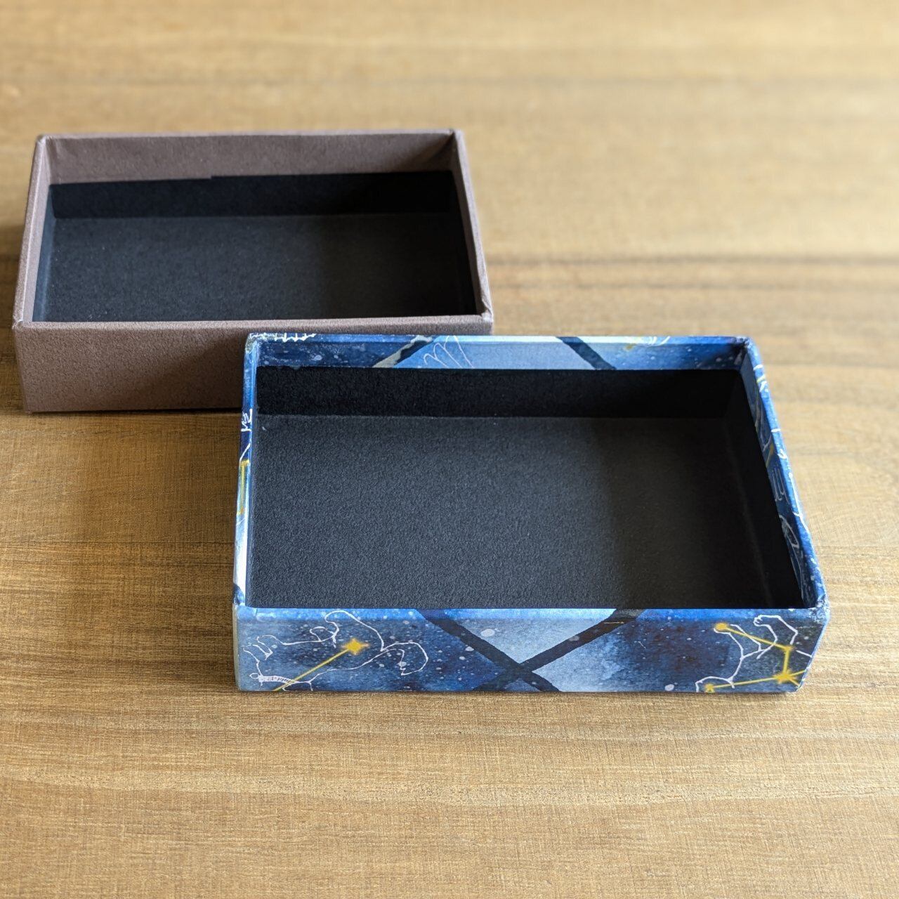 遠い宇宙への憧れを掻き立てる、星座柄の小箱。