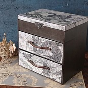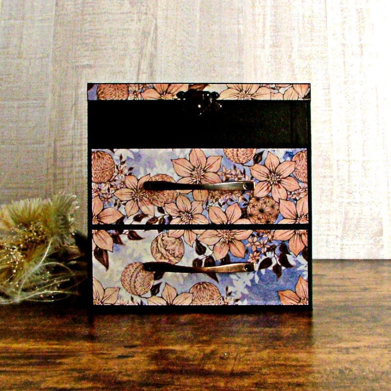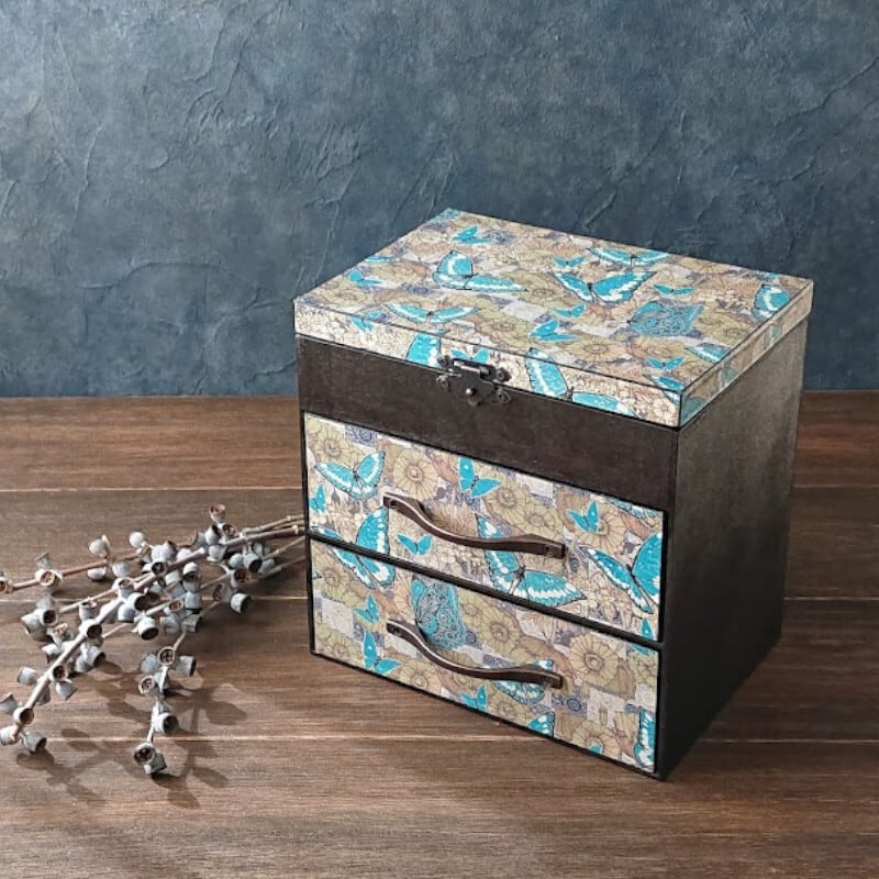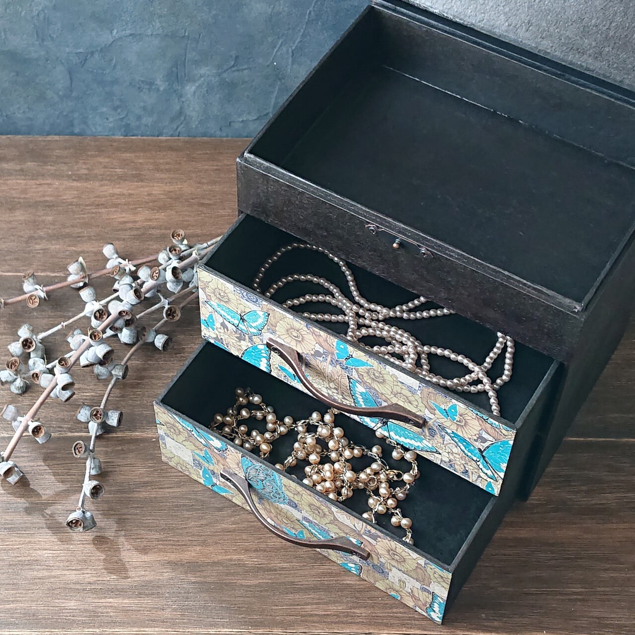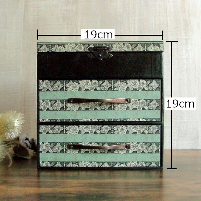 アクセサリーや文房具の収納や、コンパクトなお裁縫箱などに最適。美しい姿で机に出しっぱなしにしても華やかなお部屋のアクセントになるので、日用品やお薬の収納などにもお役立てください。